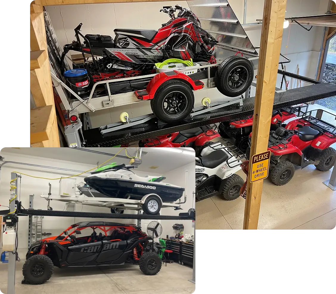 Whether you have a two-car garage you want to turn into a four-car garage or you have a much larger space and too many toys you need to store, this lift is for you! The Wildfire Double Wide is the best choice for multiple-vehicle storage or wide vehicles, maximizing your garage’s capacity.