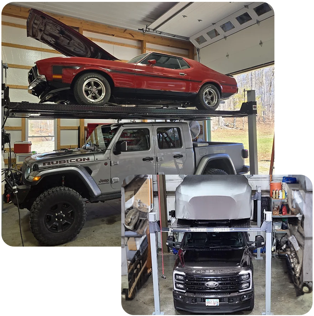 Ideal for most sedans and small to medium-sized cars, providing reliable lift and easy operation, our Standard Lift is a great option if you’re working with limited space or storing a few smaller vehicles.